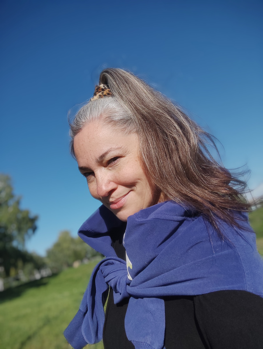 У меня литой вид природного окрашивания! Да, вот так! Без силиконов и парабенов и прочих "без"... И далеко по барабану, как для других теперь смотрится седина. Знаю, что это затык такой стереотипный, сама такими глазами смотрела на женщин с сединой. Ну было у меня тоже такое некрасивое представление о седине, но это не мой мозг так сформулировал, а коллективный. Добавьте сюда страх старости, программу выживания за счёт костылей красоты и всё женщина "упакована" по полной программе. А дышать, а пукать можно? Спасибо, что разрешили, а то совсем бы стало не сладко)). Это на сколько надо поразить и запихать своё я, чтобы напрочь забыть о красоте натуральной, вместо этого видеть только шаблоны и страхи... Хорошо! Некрасиво (мы понимаем, что некрасиво потому, что в мозгу срабатывает страх, оказаться за бортом жизни)! Но, как вы объясните комплименты мужчин в мой седой период? Нет, они не слепы, не в розовых очках, почему им красиво, то, что ношу? Может дело не в седине, может об