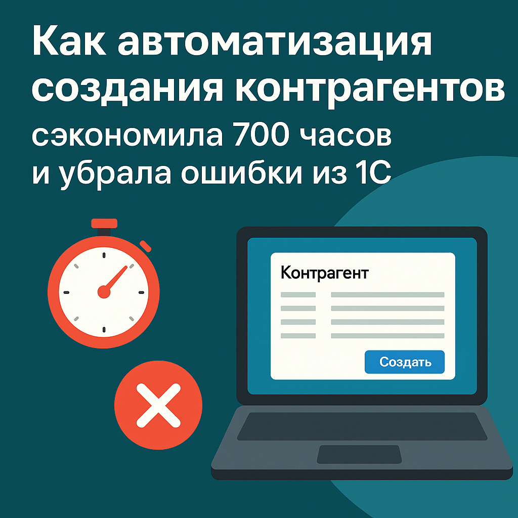 В среднем в бизнесе создаётся от 5 до 30 новых контрагентов в день. Особенно в компаниях, активно работающих с B2B: тендеры, поставщики, клиенты, подрядчики. Заведение контрагента — операция рутинная, но обязательная. И вот как она обычно выглядит: 📥 Менеджер получает реквизиты: в теле письма, в PDF или в скан-копии