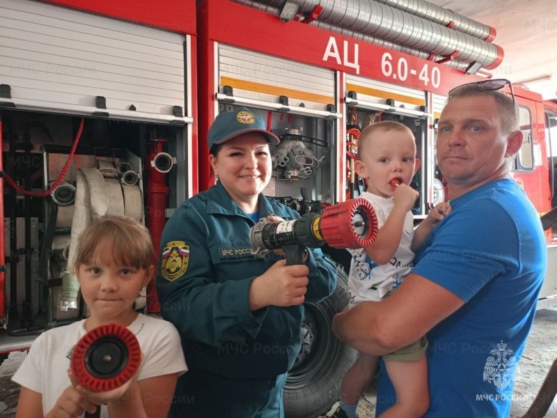 В рамках акции «Мои безопасные летние каникулы» в 111 пожарно-спасательной части по охране Апшеронска, входящей в состав 9 пожарно-спасательного отряда, была проведена увлекательная экскурсия для семьи из Нижнего Новгорода. В экскурсии приняли участие Юля и Александр, их дети, а также двое племянников, живущих в Апшеронске.