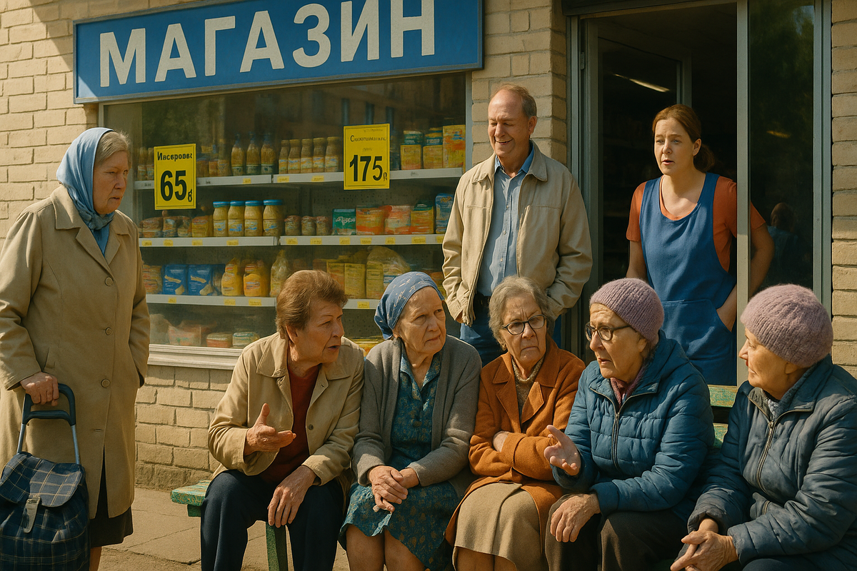 На скамейке, что стоит у самого подъезда, уже привычно собрались свои. Сегодня солнце с утра припекло по-летнему — но настроение на дворе от этого не прояснилось. Галина Ивановна с сумкой на колёсах неспешно шарит глазами по витрине внутри магазина. Пожелтевшие ценники на простых макаронах встречают её кривыми новыми цифрами.