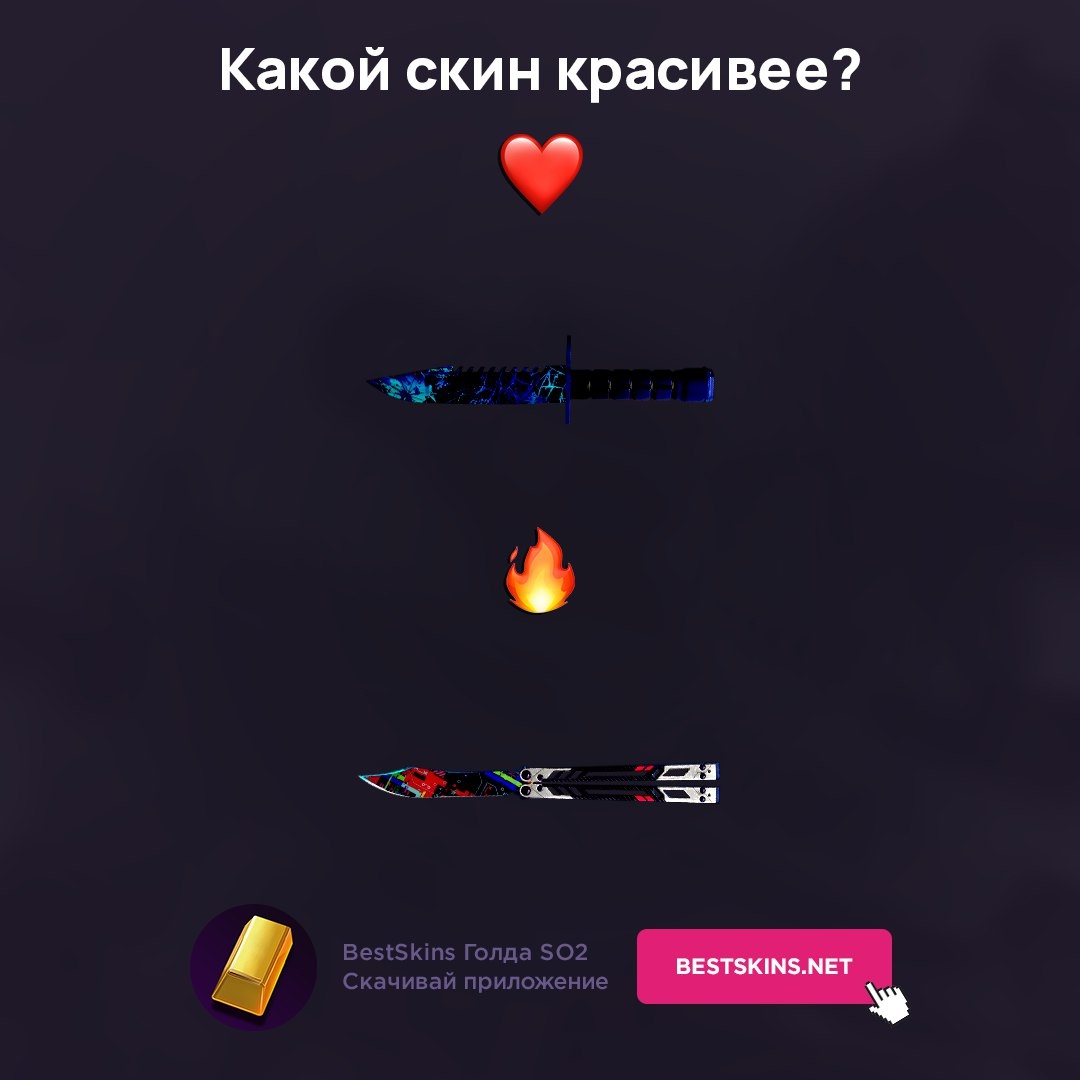 Какой скин лучше? BestSkins SO2 Если верхний — ❤️, если нижний — 🔥 Поставь реакцию — твой голос важен! 👀 Кто победит? Голосуем! 📲 Скачать - https://bestskins.net