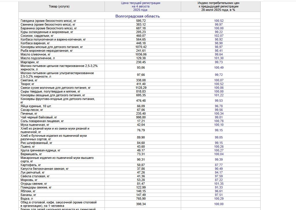 В Волгограде за неделю подешевели несколько видов овощей. Такими данными поделился Волгоградстат. С 29 июля по 4 августа на 3,2% подешевели куриные яйца, которые можно приобрести по 66 рублей за десяток. Рекордное падение в цене за неделю показала морковь (-12,8%), ее можно найти на прилавках за 53 рубля за килограмм. На 12,2% упал в цене картофель, он продается по 51 рублю за кг. Падение в цене на 9,5% показала белокочанная капуста. Она в среднем стоит по 38 рублей за кг. Таким образом, в регионе значительно подешевел базовый борщевой набор. Также падение в цене на 8,7% показали помидоры (123 рубля за кг), на 5,8% подешевел репчатый лук (47 рублей за килограмм), на 3,4% упали в цене яблоки (140 рублей за кг). Немного за неделю подорожали огурцы (+1,4%), которые продают по 81 рублю за кг и сардельки (+2,1%), они в среднем стоят по 460 рублей за килограмм. Кроме того, за неделю снизилась стоимость проживания в домах отдыха, пансионатах (-3,2%), в хостелах (-1,5%), а также в 4-5-звездочн