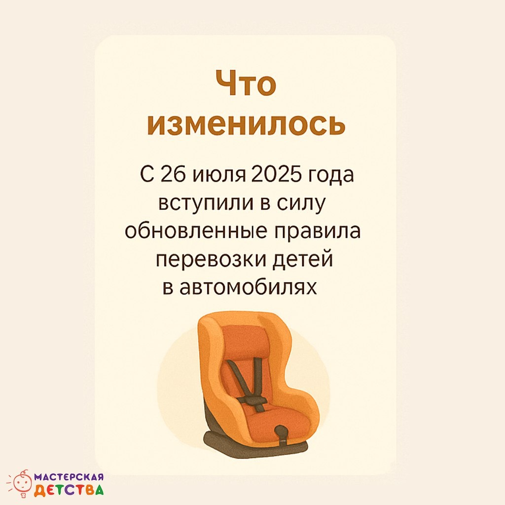 👽 Мамы, папы, бабушки, дедушки! С 26 июля 2025 года в России действуют новые правила перевозки детей в автомобилях. Эти изменения касаются каждого, кто хотя бы иногда подвозит ребёнка — в садик, в кружок, на дачу или к врачу. Теперь действуют строгие требования к детским удерживающим устройствам — и это вопрос не только закона, но и реальной безопасности. ⚡️ Мы оформили самые важные моменты в карточках — чтобы было просто понять и легко запомнить. Сохраните, покажите близким и друзьям: пусть в каждой машине будет по-настоящему безопасно. 💬 А вы уже проверили автокресло или бустер в своей машине?