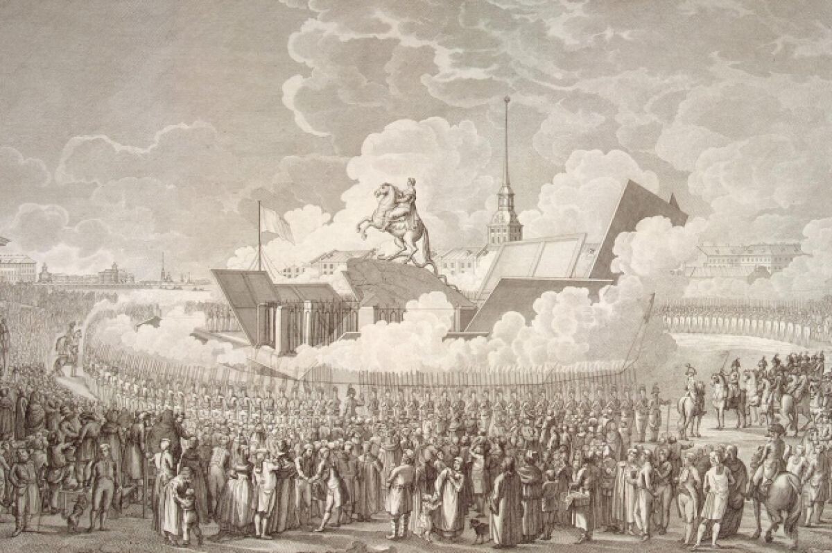 7 августа 1782 года после 16 лет строительства на Исаакиевской площади Санкт-Петербурга состоялась церемония открытия памятника императору Петру I (Медный всадник).
