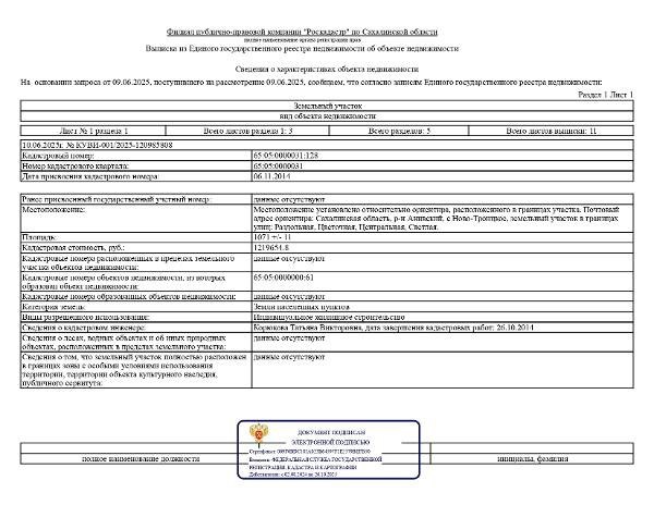Название: земельный участок, площадью 1071 кв.м., к/н 65:05:0000031:128, расположенный: Сахалинская область, Анивский район, с