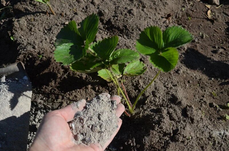 Для этого можно подкормить клубнику монофосфатом калия, сульфатом калия, суперфосфатом или древесной золой. Вносим только одно удобрение.