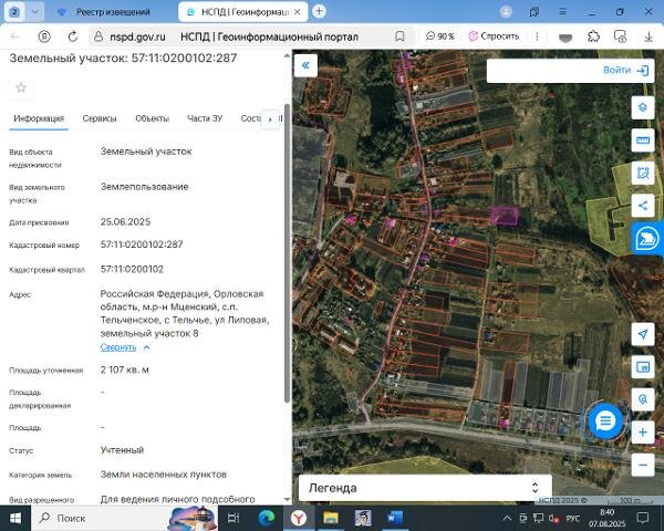 Название: земельный участок из категории земель населенных пунктов, кадастровый номер: 57:11:0200102:287, адрес: Российская Федерация