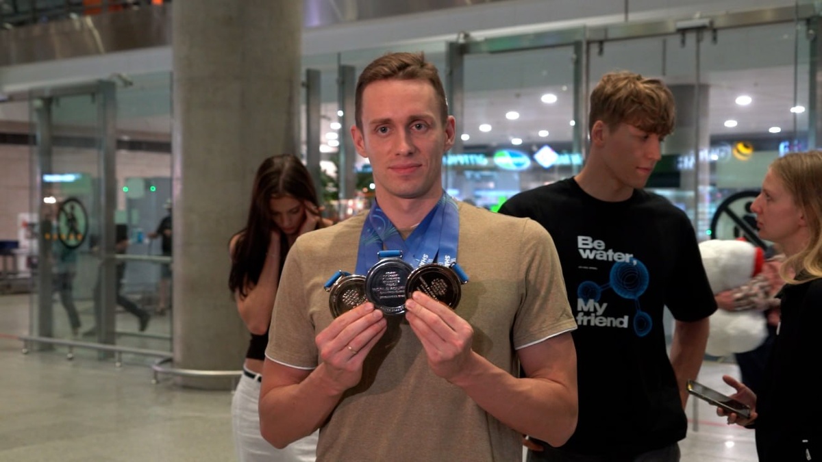 В Пулково встретили петербургских пловцов, завоевавших медали на чемпионате мира по водным видам спорта
