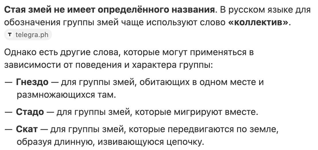 Я начинаю сомневаться: ну вот клубок я знаю, а стая? Может ли быть «стая змей»?? Я забиваю запрос в Яндекс: стая змей?