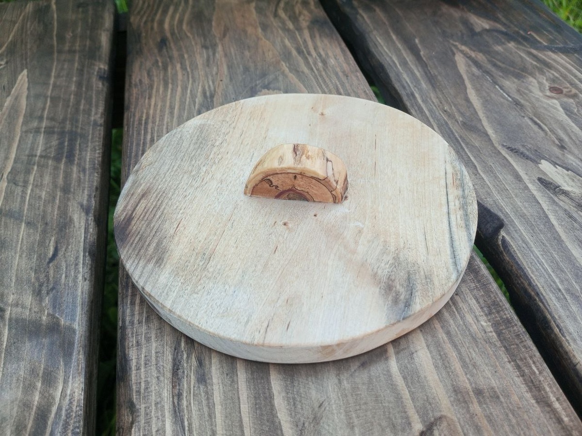 Необычный заказ из Авито. Деревянная крышка на стеклянную кастрюлю. Честно предупредил девушку, что она либо будет немного неровной, либо будет дорого стоить. Ибо в первом случае я ее буду лобзиком вырезать. И от руки болгаркой шлифовать. А во втором потребуется изготовить еще одну деталь-ШАБЛОН. И скорее всего заказать ее на ЧПУ. Апотом по шаблону отфрезеровать края. Но тогда крышка будет стоить тысячи 4. Пояснил что ее будет коробить от пара. Предложил лучше купить стекло или металл. Она решила что идеальные формы ей не нужны и крышка обязательно должна быть из дерева. Итог: березовая крышка диаметром 16см, с ручкой из той самой сирени. Со слегка неровными краями. Цена 700р. С Учетом комиссии Авито-800р.