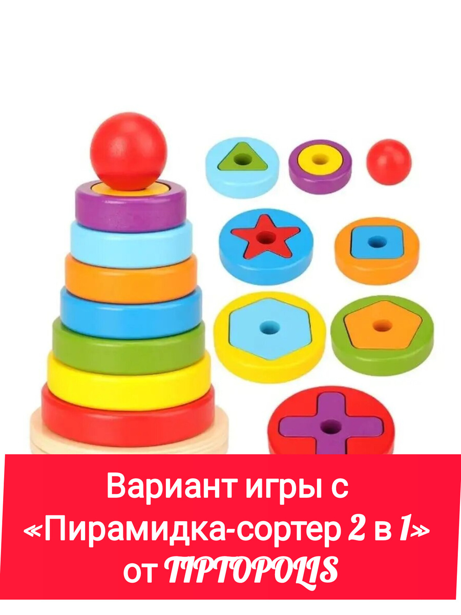 Вариант игры с «Пирамидка-сортер 2 в 1» от TIPTOPOLIS для детей 2–5 лет