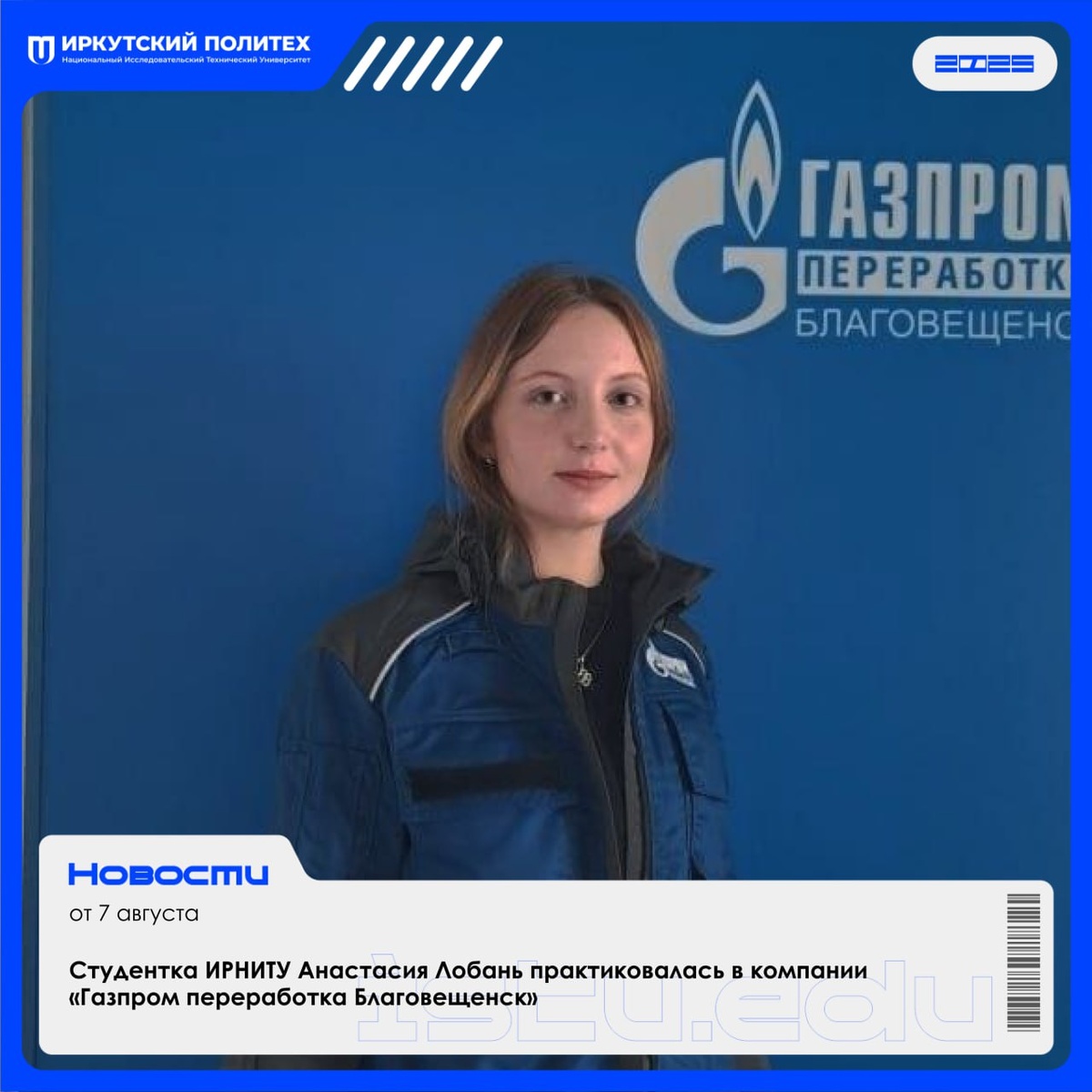 ☀️ Студентка ИРНИТУ Анастасия Лобань практиковалась в компании «Газпром переработка Благовещенск»