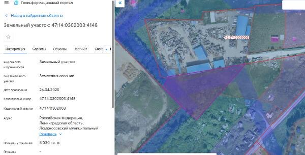 Название: Земельный участок с кадастровым номером 47:14:0302003:4148, местоположение: Российская Федерация, Ленинградская область
