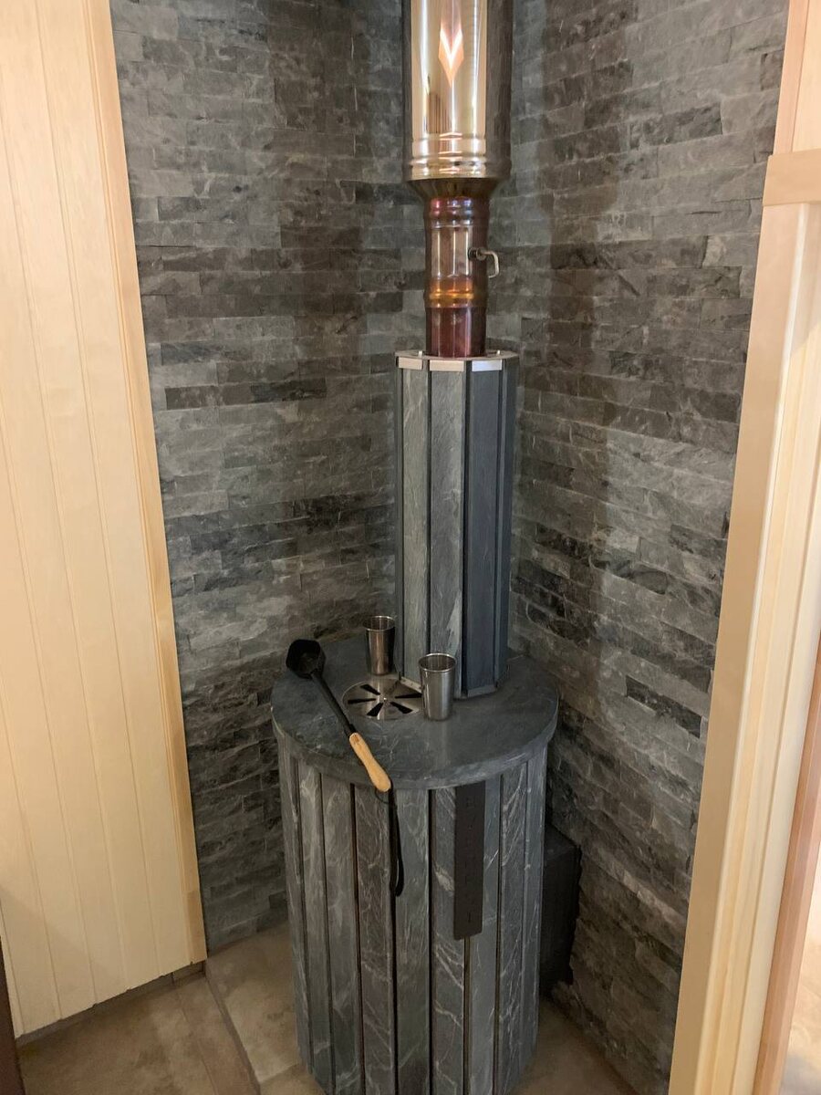 Собрали классную парную под ключ с чугунной банной печкой Steam master в ламелях из талькохлорита.