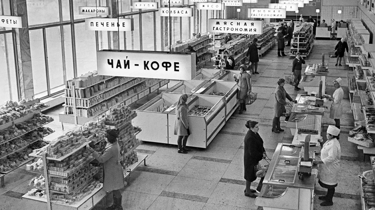 Супермаркеты в советском понимании — это гастрономы, универмаги и универсамы. Они стали массово появляться с конца 1950-х годов.