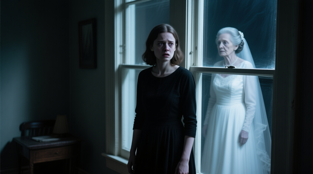 Она стояла на пороге, в чёрном платье, волосы заколотые.