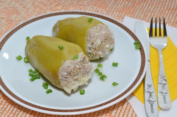Фаршированный болгарский перец От автора: Фаршированный болгарский перец довольно известное и распространенное кулинарное блюдо, в ресторанах его вроде не подают, но в домашней обстановке часто используется. Ингредиенты: Свинина - 470 гр. Рис - 100 гр. Лук репчатый - 1 шт. Соль - 10 гр. Перец черный молотый - 5 гр. Перец болгарский - 600 гр. Майонез - 50 гр. Источник: https://rusdinner.ru/page/farshirovannyj-bolgarskij-perec
