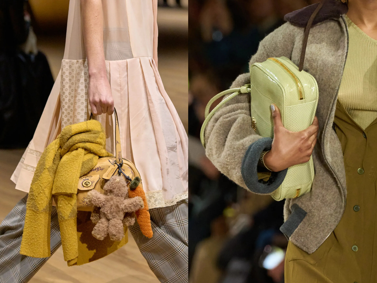 Самый игривый и запоминающийся тренд сезона — сумки с подвесками. Да-да, речь не только о милых брелках: теперь аксессуары украшаются плюшевыми игрушками, цепями и даже мини-сумочками.