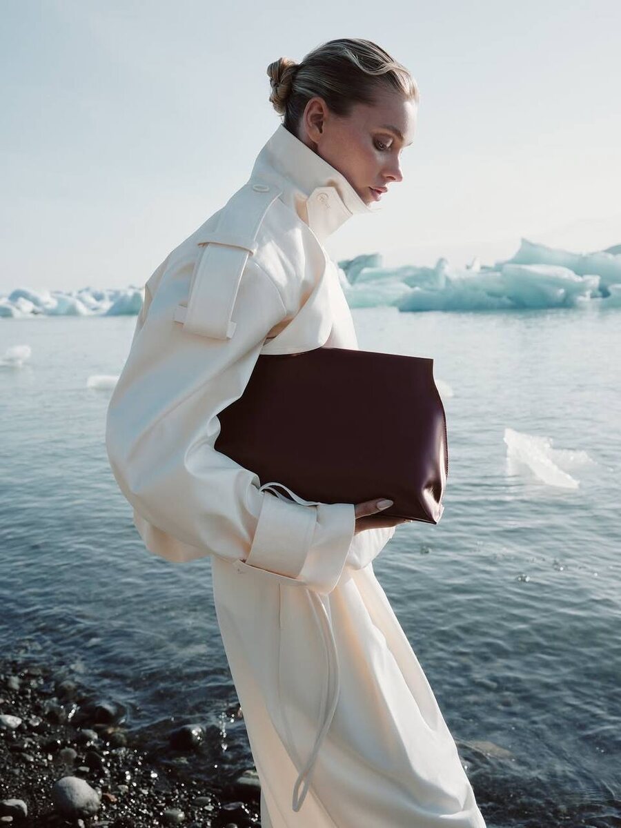 Известная шведская модель Эльза Хоск появилась в укороченном тренче Pentimento от бренда-участника Московской недели моды COIS на кадрах из