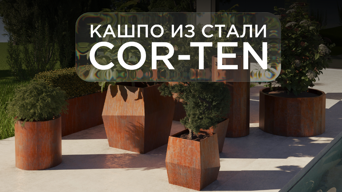 Особенно – если это кашпо из стали COR-TEN®. COR-TEN – это особый тип стали, разработанный для мостов и архитектурных сооружений. Он покрывается патиной, которая не разрушает, а защищает металл. Эта патина создаёт уникальный рыжевато-коричневый оттенок, глубину и текстуру, которую невозможно повторить. Никакой покраски, никакого ухода. Только время, металл и воздух. 🧱 Это больше, чем контейнер для земли COR-TEN – это язык архитектуры. Он не «украшает» пространство, а формирует его.