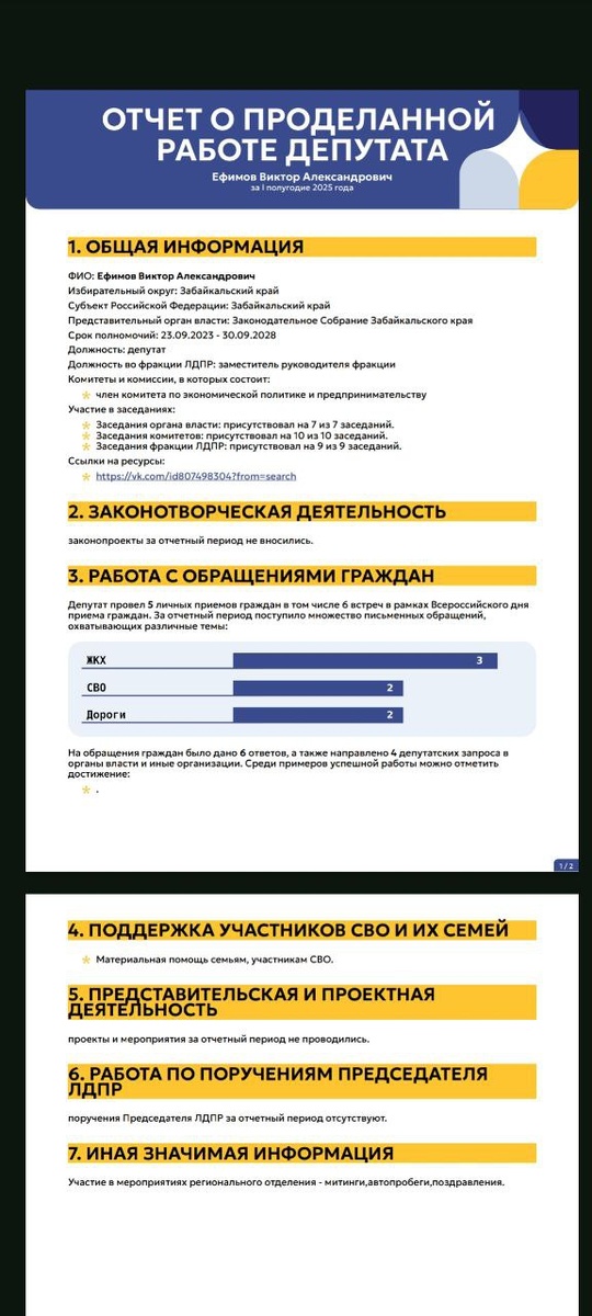 Отчёт о проделанной работе депутатов за 1-е полугодие 2025 года