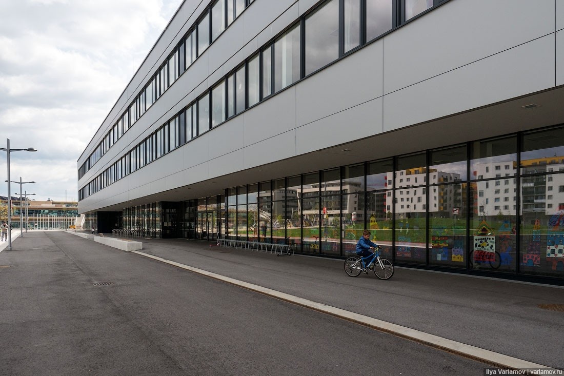 18+ НАСТОЯЩИЙ МАТЕРИАЛ (ИНФОРМАЦИЯ) ПРОИЗВЕДЁН, РАСПРОСТРАНЁН И (ИЛИ) НАПРАВЛЕН ИНОСТРАННЫМ АГЕНТОМ ВАРЛАМОВЫМ ИЛЬЕЙ АЛЕКСАНДРОВИЧЕМ ЛИБО КАСАЕТСЯ ДЕЯТЕЛЬНОСТИ ИНОСТРАННОГО АГЕНТА ВАРЛАМОВА ИЛЬИ АЛЕКСАНДРОВИЧА Недавно я показал вам новый район в Вене, одном из самых комфортных городов для жизни в мире. Сегодня хочу показать, как в Вене живут дети! 01. Это школа! Около входа в школу – большая велопарковка. 02. Здесь же есть место, где родители могут ждать своих детей. 03. Здание школы построено по проекту португальского архитектурного бюро ZT Arquitectos LDA. Весь комплекс занимает территорию 4,8 гектаров. В его строительство было вложено 34 миллиона евро. 04. Если быть точным, это не только школа. В здании размещаются 11 групп детского сада, 17 классов начальной школы и 8 коррекционных классов для детей с особенностями в развитии и инвалидностью. 05. В здании школы есть кабинеты для занятий отдельных классов и общие зоны, такие как медиацентр, библиотека, столовая, спортивный и тренаж