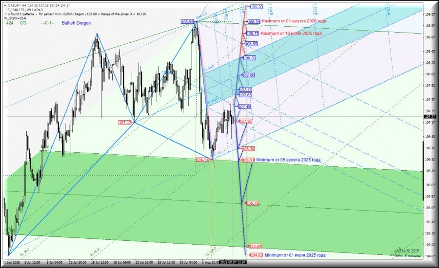 https://basechop.ru/wordpress/?p=53069 Операционный масштаб Minute (таймфрейм h4) CAD/JPY – h4 – обзор вариантов движения c 01 августа 2025 г. Предыдущий обзор Canadian Dollar vs Japanese Yen (таймфрейм Daily) от 31.07.2025 г. 14:32 ___________________ Canadian Dollar vs Japanese Yen Развитие движения CAD/JPY-h4 с 08 августа 2025 года будет обусловлено отработкой и направлением пробоя границ канала 1/2 Median Line Minuette-h1 (107.20 – 107.45 – 107.75) и зоны равновесия (107.65 – 108.00 – 108.30) вил младшего операционного масштаба Minuette-h1 – отработку указанных уровней смотрим на графике ниже. Нисходящее движение. Если цена инструмента окажется ниже нижней границы канала 1/2 Median Line Minuette-h1 – пробой уровня поддержки 107.20 – тогда может быть возобновлено нисходящее движение CAD/JPY к начальной линии SSL Minuette-h1 (106.70) и к границам зоны равновесия (106.51 (minimum от 05 августа 2025 года) – 105.75 – 105.00) вил старшего операционного масштаба Minute-h4. Восходя