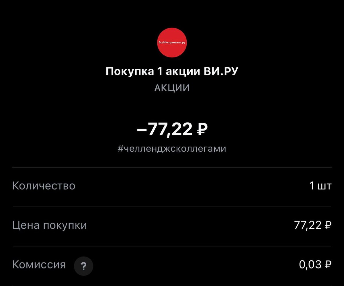 Всем привет! Покупка на сегодня #243, обращаю внимание приобретаем один лот Статистика портфеля на стороннем сервисе, можно посмотреть по "ссылке" Напомню это челлендж с коллегами, каждый рабочий день пополняем брокерский счет на 250 рублей и инвестируем. Если возникли вопросы или есть не понимание, что делать. Задавайте «тут» Покупка #243 🟢 "ВИ.РУ" 77.22 rub #VSEH 1 лот #каждыйсможет #челенджсколлегами ✈️ Стас Мироненко 📹Youtube | 📹Rutube