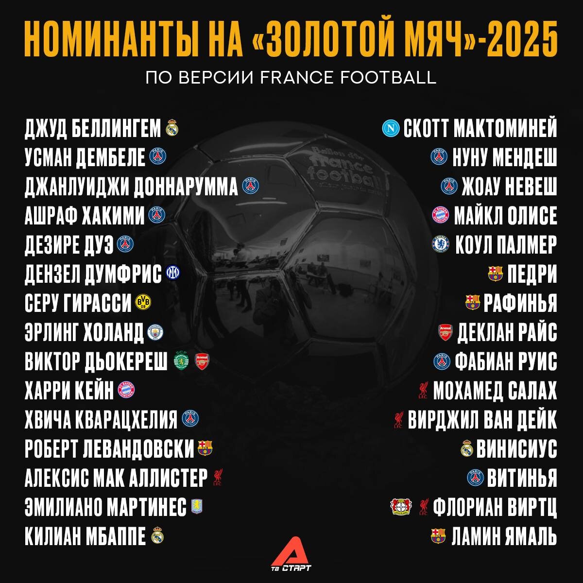 ⚡️🏆 France Fooball объявили номинантов на «Золотой мяч»