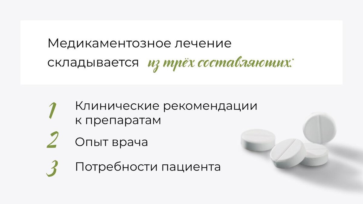 Стоит прийти к врачу, тебя сразу посадят на таблетки Многие уверены: визит к психиатру всегда заканчивается назначением лекарств. Но так ли это? И главное — хочется понять, насколько эффективны сами препараты. Давайте разбираться⬇️ Действительно ли помогают препараты? Да, лекарства определенно помогают. Лекарственные препараты являются основным средством лечения некоторых психических расстройств, таких как аффективные расстройства, психотические состояния или деменция. При невротических состояниях, где нарушения менее выражены, препараты назначаются в комбинации с психотерапией. Кроме того, при столкновении с чрезвычайными, стрессовыми ситуациями некоторые психофармакологические препараты могут помочь пережить непростой отрезок жизни, сохраняя свою обычную деятельность. Например, медикаменты могут смягчить реакции, связанные с невосполнимыми утратами, потерей работы или разводом. О каждой из групп психотропных препаратов есть масса предубеждений и мифов. Например, что нейролептики