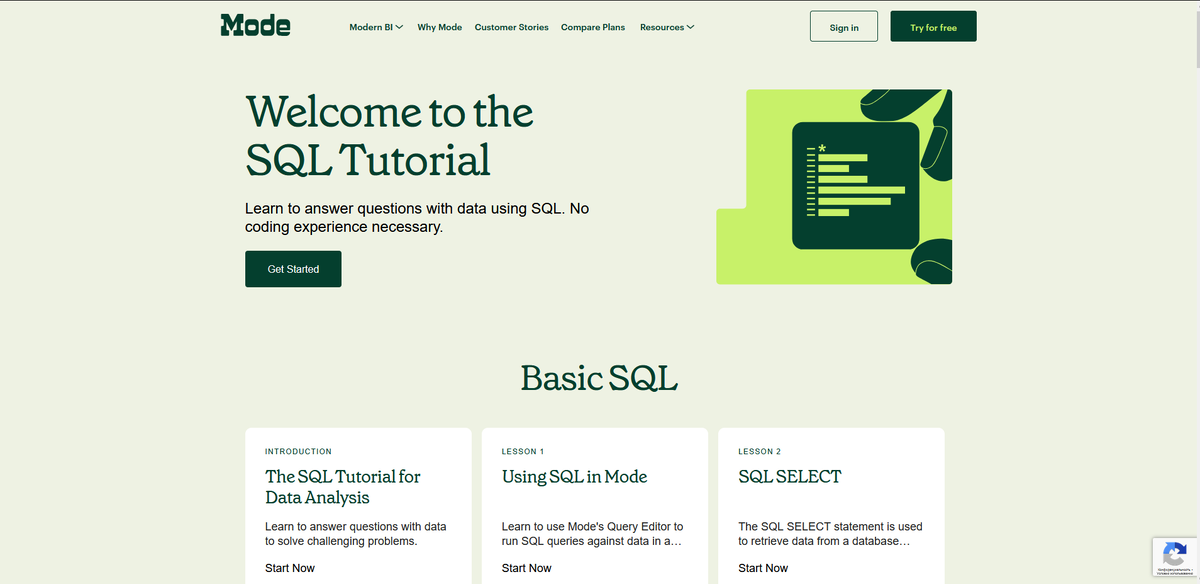 Курс SQL от Mode — это бесплатное пошаговое руководство из 10 полноценных уроков, предназначенное для быстрого и глубокого освоения языка SQL. Он подходит как для начинающих, которые только знакомятся с запросами к базам данных, так и для опытных специалистов, желающих систематизировать знания и научиться применять SQL в аналитике на реальных данных.