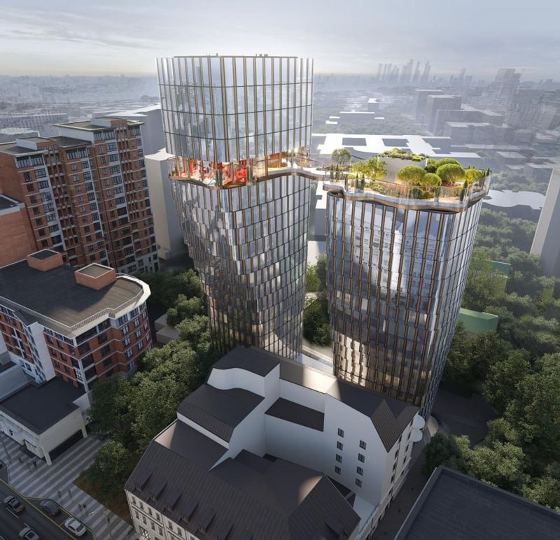 Появился проект ЖК с парящим мостом и приватным парком на Новослободской улице