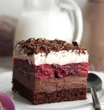 Это торт с вишней и шоколадным пудингом. Он состоит из шоколадного бисквита, очень простого в приготовлении заварного крема, вишни в желе и крема из маскарпоне. Торт получается нежным и очень вкусным. Обязательно попробуйте его приготовить к любому праздничному столу. Вот рецепт торта с вишней и шоколадным пудингом. Вот эти продукты нам будут нужны для приготовления: