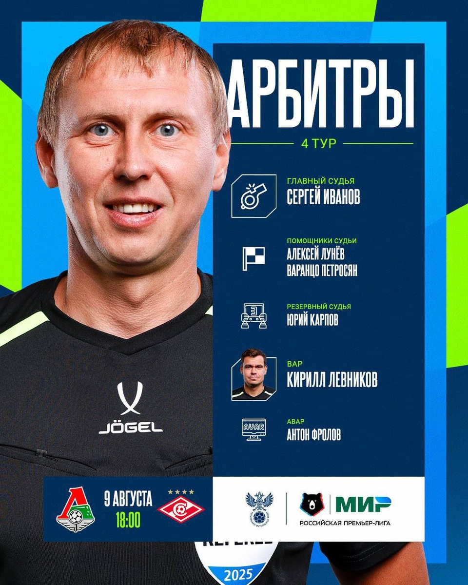 Сергей Иванов обслужит дерби Локомотив - Спартак. Левников — VAR.