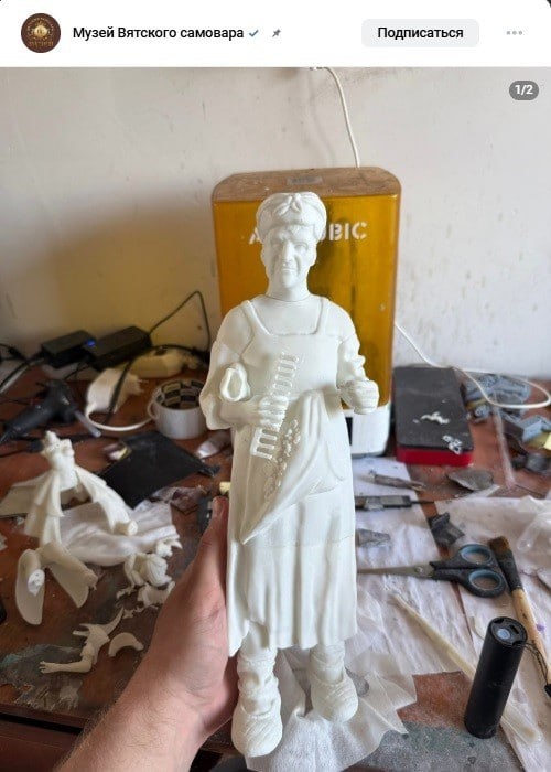 Музей вятского самовара первым в России воссоздал гипсовую фигуру начала XX века без чертежей и оригинала. Речь о фигуре из коллекции «Народы России», ранее известной на всю страну. Скульптуру по фотографии изготовили в мастерской Короваева в слободе Дымково. «Благодаря 3D-моделированию и кропотливой работе нашей команды мы не просто восстановили образ — мы сохранили и клеймо мастера», — сообщили в соцсетях музея. При этом добавили, что первая скульптура положила начало созданию первого в России музея гипсовой скульптуры – «Музея забытых мастеров Вятки».