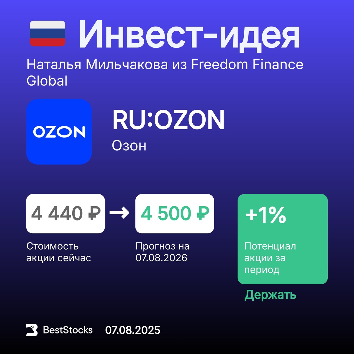 π·πΊ ΠΠ½Π²Π΅ΡΡ-ΠΈΠ΄Π΅ΠΈ ΠΏΠΎ ΡΡΡΡΠΊΠΈΠΌ Π°ΠΊΡΠΈΡΠΌ ΠΡΠΎΠ³Π½ΠΎΠ· ΠΏΠΎ Π°ΠΊΡΠΈΠΈ ΠΠ·ΠΎΠ½ ΠΡΠΎΠ³Π½ΠΎΠ·Π½Π°Ρ ΡΠ΅Π½Π°: 4500 β½ (+1%) Π Π΅ΠΊΠΎΠΌΠ΅Π½Π΄Π°ΡΠΈΡ: ΠΠ΅ΡΠΆΠ°ΡΡ ΠΠ°ΡΠ° ΠΏΡΠΎΠ³Π½ΠΎΠ·Π°: 07.08.2025 ΠΡΠΎΠ³Π½ΠΎΠ· Π΄ΠΎ: 07.08.2026 ΠΠ½Π²Π΅ΡΡ-ΠΊΠΎΠΌΠΏΠ°Π½ΠΈΡ: Freedom Finance Global ΠΠ²ΡΠΎΡ ΠΏΡΠΎΠ³Π½ΠΎΠ·Π°: ΠΠ°ΡΠ°Π»ΡΡ ΠΠΈΠ»ΡΡΠ°ΠΊΠΎΠ²Π° ΠΡΡ ΡΠ΅ΠΊΠΎΠΌΠ΅Π½Π΄Π°ΡΠΈΠΈ Π½Π° ΡΠ΅Π³ΠΎΠ΄Π½Ρ β β’β’β’β’β’ β‘οΈ ΠΠΎΠ²ΡΠΉ ΡΡΠ½ΠΊΡΠΈΠΎΠ½Π°Π» Π½Π° ΡΠ°ΠΉΡΠ΅ β π·πΊ ΠΠ°ΠΊΠΈΠ΅ ΡΡΡΡΠΊΠΈΠ΅ Π°ΠΊΡΠΈΠΈ Π² ΡΡΠ΅Π½Π΄Π΅. Π£Π·Π½Π°ΠΉΡΠ΅, ΠΊΠ°ΠΊΠΈΠ΅ Π±ΡΠΌΠ°Π³ΠΈ ΠΈΠ· Π ΠΎΡΡΠΈΠΈ ΠΏΠΎΠ»ΡΡΠΈΠ»ΠΈ Π±ΠΎΠ»ΡΡΠ΅ Π²ΡΠ΅Π³ΠΎ ΡΠ΅ΠΊΠΎΠΌΠ΅Π½Π΄Π°ΡΠΈΠΉ Π·Π° ΠΏΠΎΡΠ»Π΅Π΄Π½ΡΡ Π½Π΅Π΄Π΅Π»Ρ.