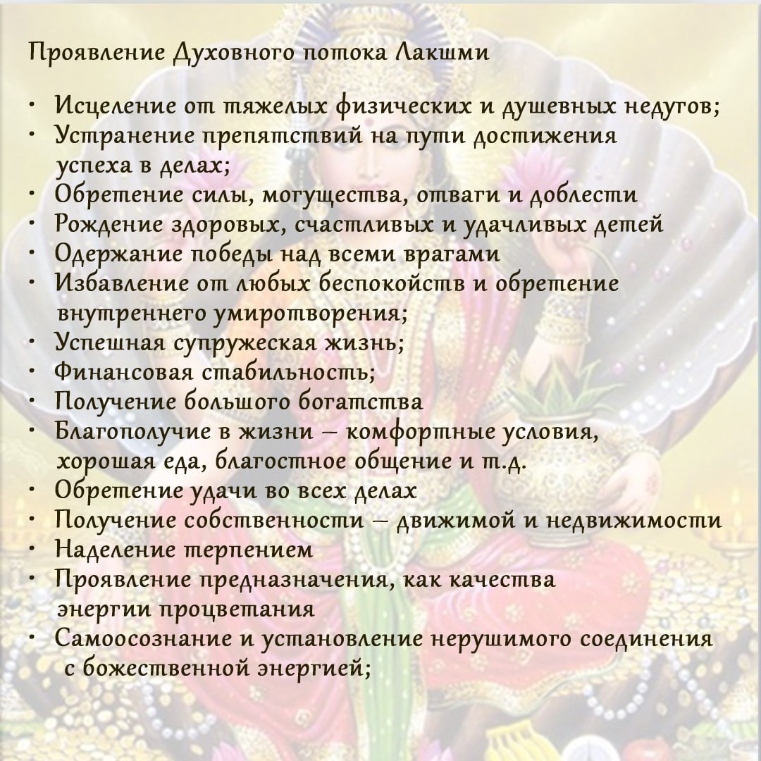 При соединении с Духовным потоком Лакшми раскрывается пространство благости! В сердце раскрывается Любовь. Оплата Подробнее о Шри Махалакшми ягье 8 августа, в 7 утра Мск! Написать в личку (Элена Шанти).
