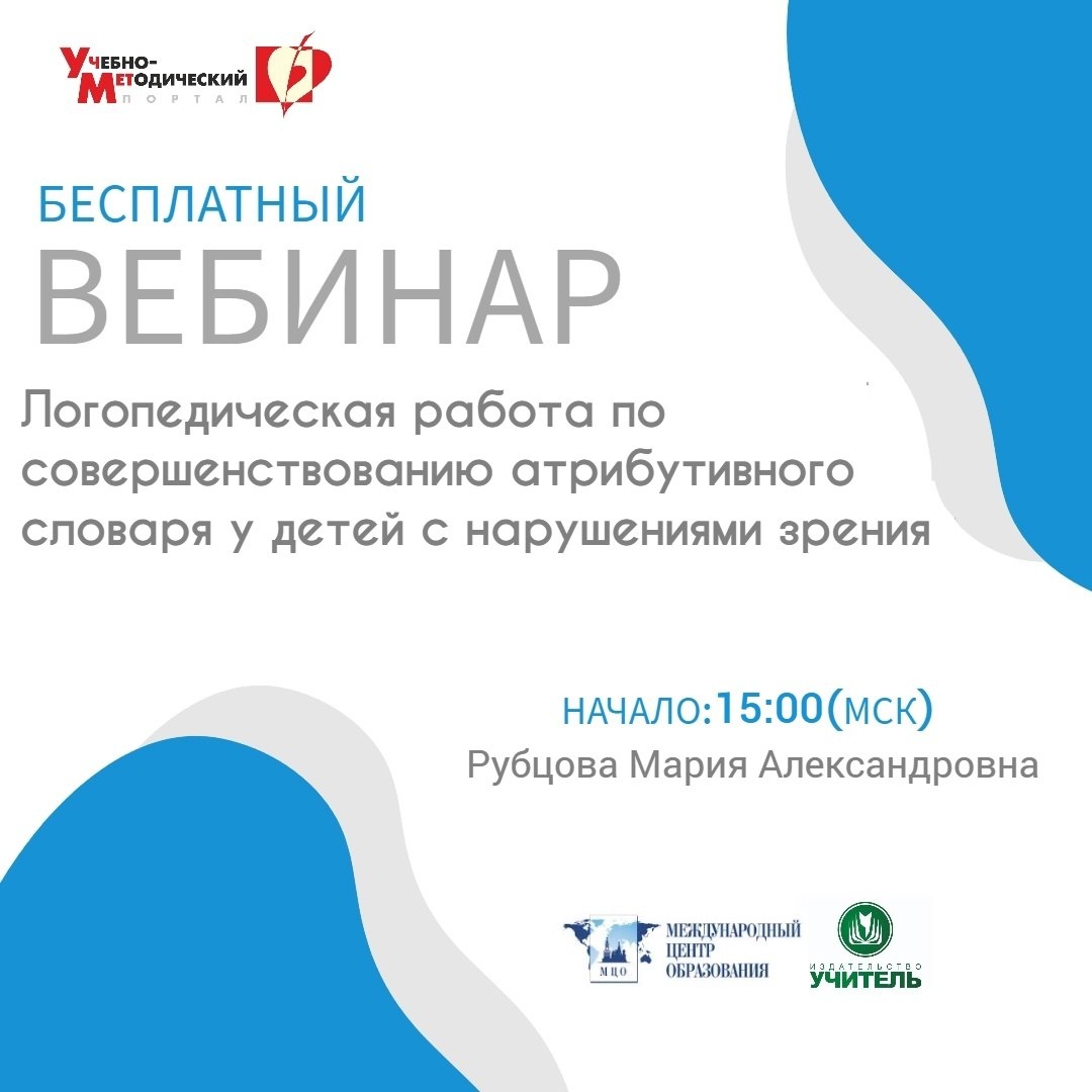 Международный вебинар «Логопедическая работа по совершенствованию атрибутивного словаря у детей с нарушениями зрения