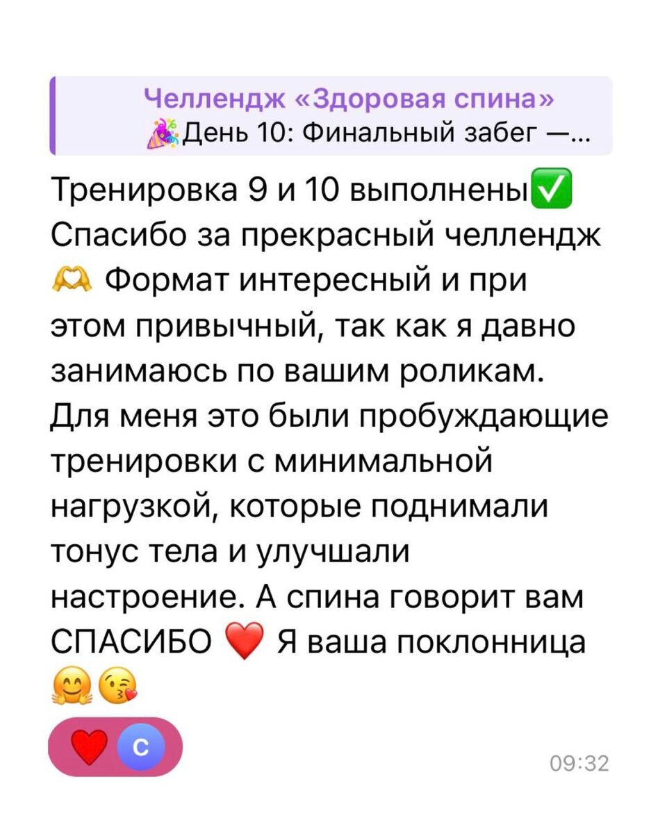 Когда участницы пишут нам такие отзывы, это значит только одно — мы на верном пути. Наши программы построены так, чтобы не убивать тело нагрузками, а мягко восстанавливать его, улучшать самочувствие и настроение. Даже минимальная нагрузка, если она подобрана правильно, даёт мощный результат. 📌 Новый интенсив «Тело в балансе» создан именно по такому принципу. За 14 дней вы: – постройнеете и укрепите тело, – уберёте отёки и тяжесть, – наладите питание без диет, – улучшите сон и снизите уровень стресса. Это про то, чтобы тело сказало вам спасибо — так же, как у сотен наших участниц, которые прошли наши челленджи и курсы. 📅 Старт — 8 августа 💳 Базовый тариф — 990 ₽ 💳 Расширенный тариф с персональными рекомендациями — 1990 ₽ Количество мест ограничено, успевайте записаться: 🔗 https://imaginefitness.online/intensive