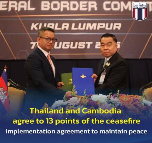 Сегодня, 7 августа, военные руководители Таиланда и Камбоджи собрались в Малайзии для срочных переговоров и подписали договор о прекращении огня. Стороны согласовали 13 ключевых пунктов, направленных на снижение напряженности и предотвращение новых конфликтов вдоль границы.
