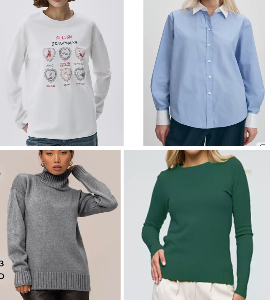 До осени осталось всего три недели, и точно пора пересматривать и обновлять гардероб. А у меня готова капсула для девушек зимних цветотипов, остальных тоже будем готовить к осени постепенно. Плечевые изделия. Артикулы: Лонгслив 326153367. Капсула у меня получилась довольно сдержанная, поэтому захотелось добавить чуть баловства. Ну, какая у меня работа соблазняющая - мне теперь срочно нужен этот лонг: кошек я люблю, в гардероб идеально вписывается. Рубашка 281611224 - очень удачная, чуть свободная, не оверсайз, я ее примеряла для обзора в Elis. Свитер 108429358 - отличная базовая модель. Низы. Артикулы: Брюки от костюма 247711592 (до 56 размера) Джинсы 210729253 Юбка 248981340 (до 60 размера) Второй слой, верхняя одежда. Артикулы: Пиджак от костюма 247711592 - красивый приталенный силуэт, правильная длина. Пальто - пиджак 425136747 (до 52 размера) - более элегантная альтернатива куртке. Пальто 313653256 - отличная модель, которая еще долго будет актуальна Обувь, сумки, ремни. Артик