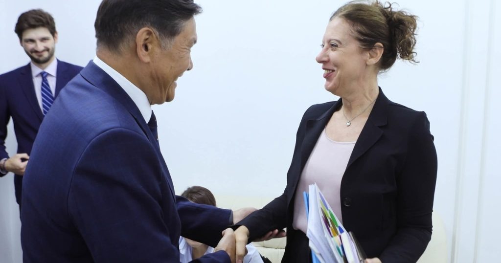 Биринчи вице-министр Асеин Исаев жана БУУ системасынын координатору Антье Граве Кыргызстан менен БУУнун кызматташуусун жана алдыдагы маанилүү иш-чараларды талкуулашты. 🌍 Кыргызстандын тышкы иштер министринин биринчи орун басары Асеин Исаев жана БУУнун системасынын туруктуу координатору Антье Граве эки тараптуу кызматташуунун актуалдуу маселелерин талкуулашты. 🤝 Кыргызстан менен БУУнун ортосундагы кызматташтыкты өнүктүрүү жана бекемдөө максатында маанилүү иш-чаралар пландалууда. Бул иш-чаралардын катарында БУУнун Башкы Ассамблеясынын 80-сессиясынын юбилейлик жалпы дебаттары жана Климаттын өзгөрүшү боюнча Рамкалык конвенциянын тараптарынын 30-конференциясы (COP30) бар. 🎯 Асеин Исаев Кыргызстандын улуттук өнүгүү максаттарына жана БУУнун туруктуу өнүгүү максаттарына жетүүдө уюмдун агенттиктери жана программалары менен жемиштүү кызматташууну мындан ары өнүктүрүүгө кызыкдар экендигин билдирди. 🙏 Антье Граве жылуу кабыл алуу үчүн ыраазычылык билдирип, Кыргызстан менен БУУнун системасынын