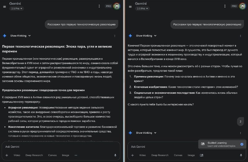 Прощай, репетитор — теперь учит сама нейронка от Google. В Gemini завезли обучающий режим: просишь — и она сама составит план, объяснит тему, найдёт примеры, иллюстрации и поможет разобраться хоть в языках, хоть в коде, хоть в теории музыки. Достаточно нажать на иконку-книгу и написать, что хочешь изучить. Всё остальное — уже её забота. Доступно бесплатно для всех пользователей, пользуемся по ссылке. Подробнее: https://hard-tm.su/threads/106377/ 🕹HARD-TM — Подписаться