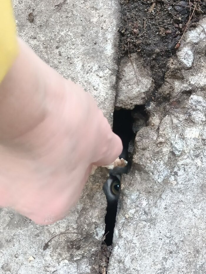 Счастливая история спасения котёнка, замурованного в каменном мешке