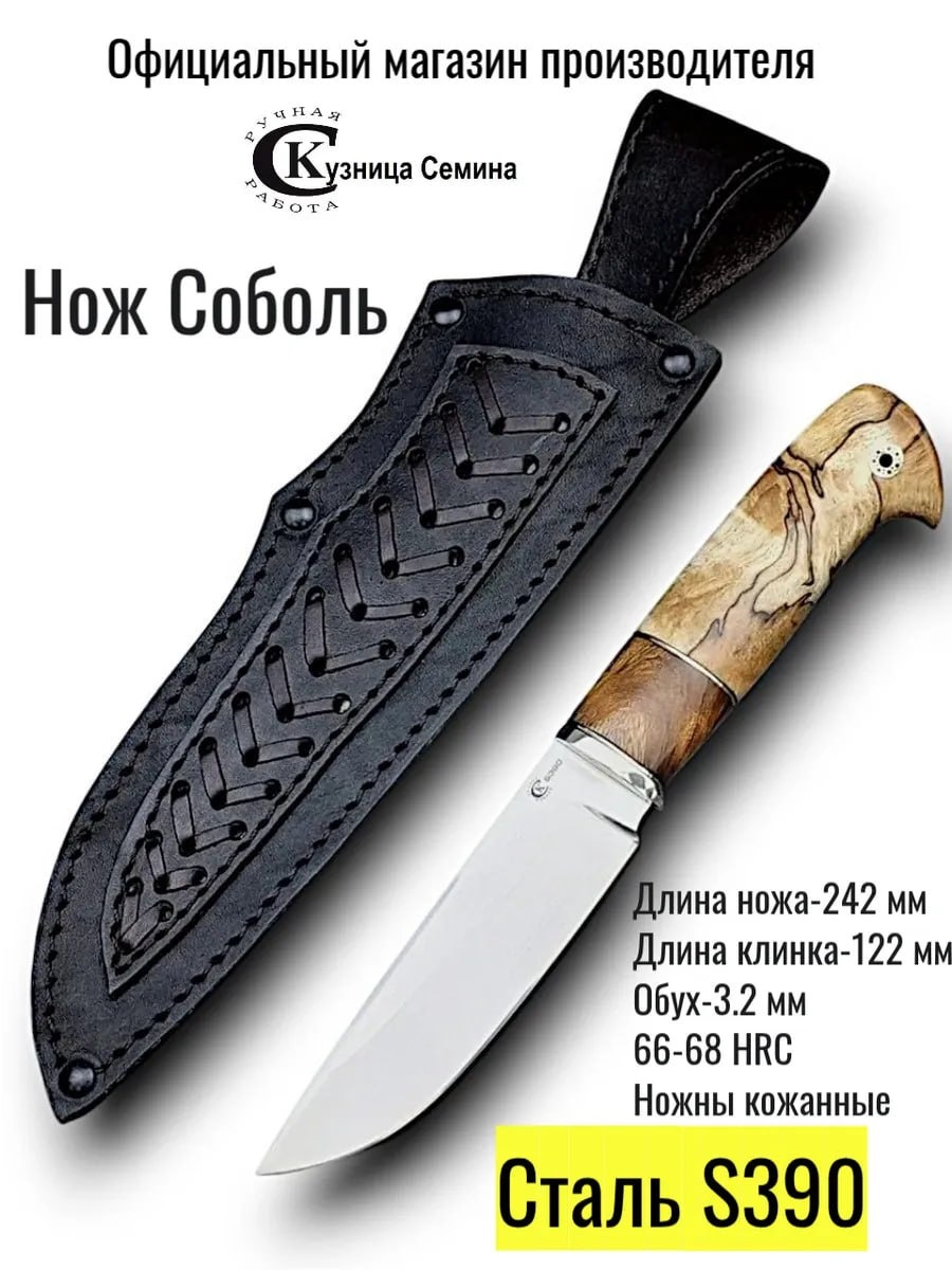 📌Нож сталь S390 Соболь, рукоять сувель, айронвуд, ножны из натуральной кожи