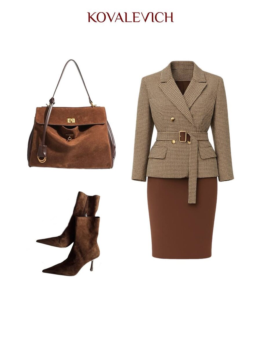 Образ роковой красотки 🤩 Главная изюминка — это костюм, который состоит из жакета и юбки правильной длины с посадкой, подчёркивающей фигуру. Добавьте высокие сапожки, большую сумку — если на работу, или аккуратную — если на выход. И всё. Образ готов! Элегантный, уверенный и очень женственный, а самое главное — подходит под разные мероприятия. Уже захотелось примерить?🤩