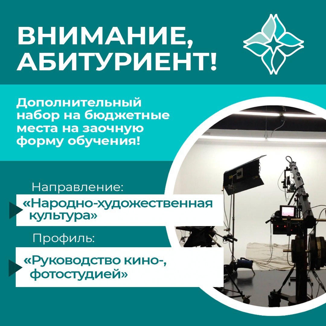📣В ГИКИТ объявлен дополнительный набор на бюджетные места на заочную форму обучения! ✅направление «народно-художественная культура» ✅профиль «руководство кино-, фотостудией» 👉Подробнее о программе обучения: https://www.gikit.ru/oop/bakalavriat/narodnaya-hudozhestvennaya-kultura-profil-rukovodstvo-studiey-kino-foto-i 👉Подробности зачисления: https://www.gikit.ru/abiturient/priem/contact/