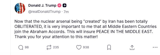 ❗️Trump calls on ALL Middle Eastern Countries to normalize relations with Israel