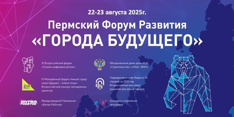 🪖 Открыта регистрация на Пермский Форум Развития «ГОРОДА БУДУЩЕГО» С 22 по 23 августа 2025 г. в г.Пермь состоится главное событие года в сфере цифровой трансформации городского хозяйства. В Форуме и его мероприятиях примут участие представители власти, НКО, производители и поставщики решений для «умных городов». В Программе ПФР «ГОРОДА БУДУЩЕГО» - минимум традиционных сессий и максимум прямого общения с основными заказчиками цифровых решений и оборудования: 🔵Презентации и панельные дискуссии: строительство, ЖКХ, цифровой суверенитет, транспорт и дороги 🔵Открытый микрофон с министрами: подтвердили участие Максут Шадаев (Минцифры), Ирек Файзуллин (Минстрой), Олег Скуфинский (Росреестр) Регистрация на участие в Форуме - на официальном сайте мероприятия.