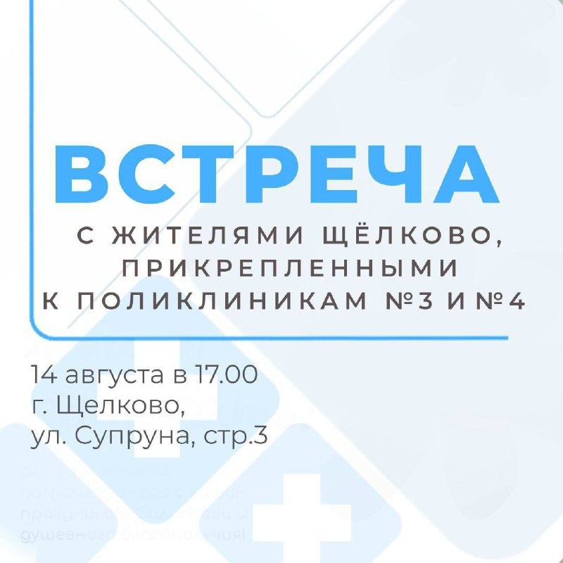π₯ 14 Π°Π²Π³ΡΡΡΠ° Π² 17:00 ΡΠΎΡΡΠΎΠΈΡΡΡ Π²ΡΡΡΠ΅ΡΠ° Π°Π΄ΠΌΠΈΠ½ΠΈΡΡΡΠ°ΡΠΈΠΈ Π©ΡΠ»ΠΊΠΎΠ²ΡΠΊΠΎΠΉ Π±ΠΎΠ»ΡΠ½ΠΈΡΡ Ρ ΠΆΠΈΡΠ΅Π»ΡΠΌΠΈ, ΠΏΡΠΈΠΊΡΠ΅ΠΏΠ»ΡΠ½Π½ΡΠΌΠΈ ΠΊ ΠΏΠΎΠ»ΠΈΠΊΠ»ΠΈΠ½ΠΈΠΊΠ°ΠΌ β3 ΠΈ β4